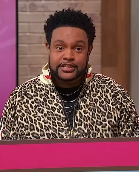 Jawn Murray on Sherri on FOX was spotted wearing this leopard print track jacket and pants on Sherri on Mar 20 2024's episode. Jawn's Set is the Leopard Track Suit Set by G-Style USA.