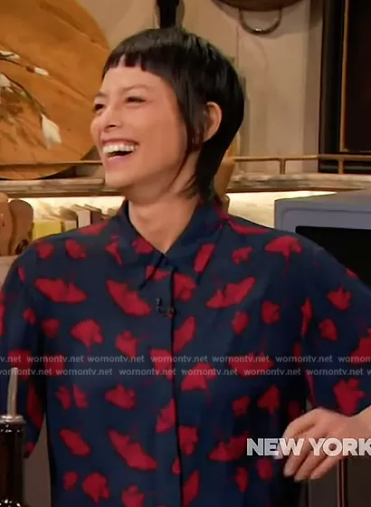 Jason Wu Gingko Print Blouse worn by Pilar Valdes on The Drew Barrymore Show