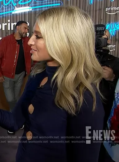 on E! News on E! was spotted wearing this blue cutout mesh dress on E! News on Mar 21 2024's episode. 's Dress is the Beliza Dress by Amanda Uprichard.