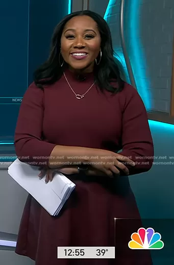 Kay Angrum on NBC News Daily on NBC was spotted wearing this burgundy mixed media dress on NBC News Daily on Apr 10 2024's episode. Kay's Dress is the Alexa Dress by Shoshanna.