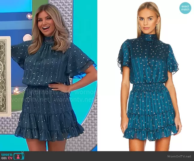 Amber Lancaster on The Price is Right on CBS was spotted wearing this green dress with metallic dots on The Price is Right on Jun 05 2025's episode. Amber's Dress is the Saffie Dress in Holiday Teal by MISA Los Angeles.