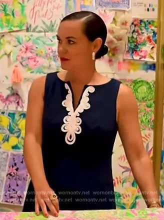 on Access Hollywood on NBC was spotted wearing this navy embroidered dress on Access Hollywood on Mar 22 2024's episode. 's Dress is the Trini Viscose Shift Dress by Lilly Pulitzer.