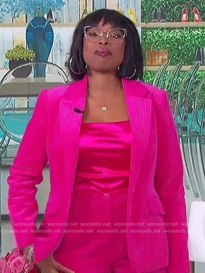 Jennifer Hudson on The Jennifer Hudson Show on FOX was spotted wearing this pink corduroy blazer and pants on The Jennifer Hudson Show on Mar 26 2024's episode. Jennifer's Blazer is the Nero Blazer by Trina Turk . Jennifer's Pants is the Brooklyn Pant by Trina Turk.