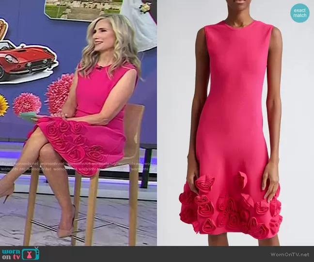 on Today on NBC was spotted wearing this pink floral applique dress on Today on Mar 26 2024's episode. 's Dress is the Penelope Floral Appliqué Knit Dress by Lela Rose.
