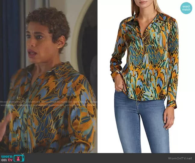 Top: Tyler Blouse in Blue Multi Parrot Feather by L'Agence