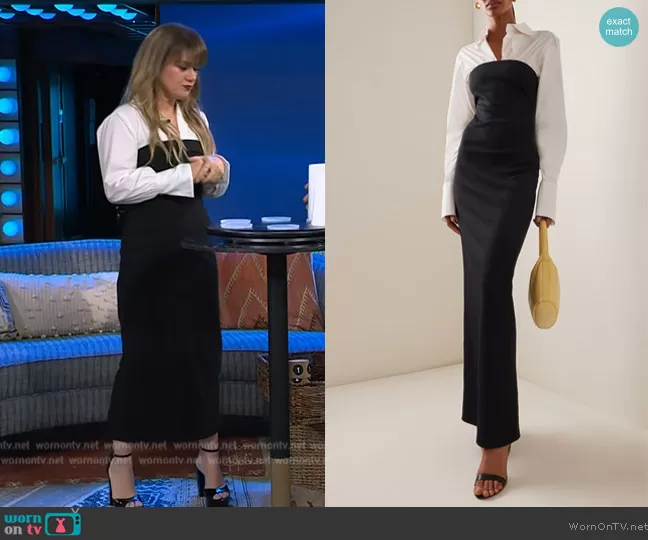 Kelly Clarkson on The Kelly Clarkson Show on NBC was spotted wearing this two-tone maxi dress on The Kelly Clarkson Show on Apr 01 2024's episode. Kelly's Dress is the Austin Poplin-Detailed Knit Maxi Dress by Anna Quan.