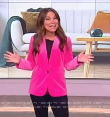 on The View on ABC was spotted wearing this pink velvet blazer on The View on Apr 01 2024's episode. 's Blazer is the Parke Blazer in Bright Begonia Pink Cotton Velvet Jacket by J. Crew.