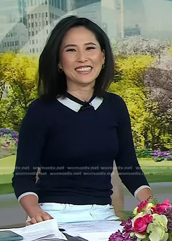 Vicky Nguyen on Today on NBC was spotted wearing this navy collar print sweater on Today on Apr 01 2024's episode. Vicky's Sweater is the Tippi Sweaters by J. Crew.