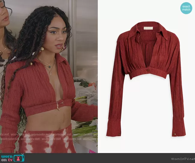 Top: Claudia cropped plissé silk-blend top by Savannah Morrow