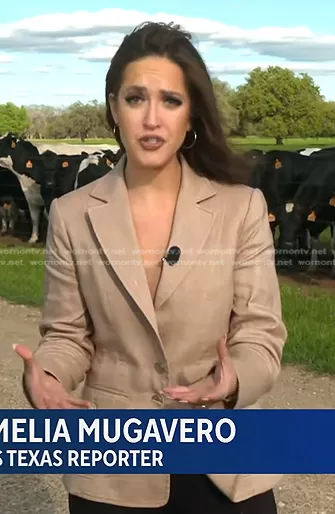 on CBS Evening News on CBS was spotted wearing this beige blazer on CBS Evening News on Apr 03 2024's episode. 's Jacket is the Linen Signature Blazer by White House Black Market.