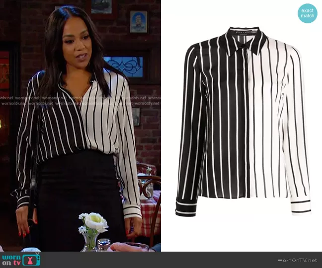 Alice + Olivia Willa Striped Two Tone Blouse worn by Jada Hunter (Elia Cantu) on Days of our Lives