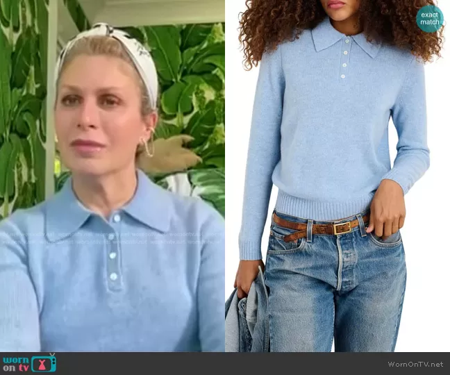 Sweater: Alice Cashmere Polo Sweater in Frost Blue by Alex Mill