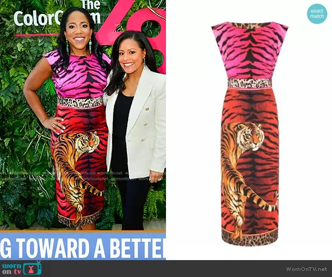 on Today on NBC was spotted wearing this tiger print dress on Today on Apr 02 2024's episode. 's Dress is the Animal-Print Midi Dress by Dolce & Gabbana.