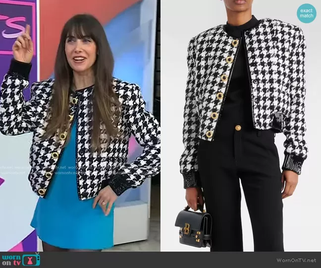on Today on NBC was spotted wearing this houndstooth jacket on Today on Apr 02 2024's episode. 's Jacket is the Houndstooth Tweed Jacket by Balmain.