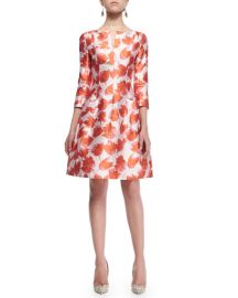 Dress: 3/4-Sleeve Petal-Print Silk Dress by Oscar de la Renta (Thanks Nick)