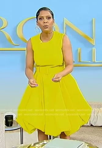Tamron Hall on Tamron Hall Show on ABC was spotted wearing this yellow belted dress on Tamron Hall Show on Apr 05 2024's episode. Tamron's Dress is the Taffeta Balloon Dress with Belt by Carolina Herrera.