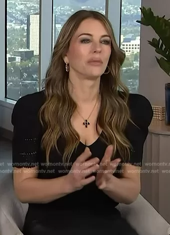 on Access Hollywood on NBC was spotted wearing this black lace trim top on Access Hollywood on Apr 05 2024's episode. 's Top is the Crochet And Knit Jumper by Maje.