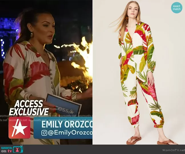 FARM Rio Spring Forest Jumpsuit worn by Emily Orozco on Access Hollywood