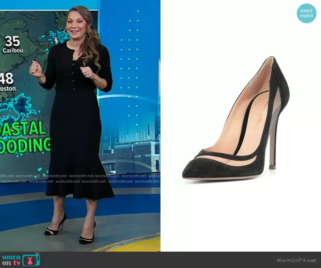 Gianvito Rossi Suede & Tulle Keyhole Pump worn by Ginger Zee on Good Morning America