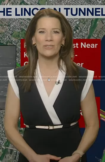 Heather O’Rourke on Good Morning America on ABC was spotted wearing this black contrast trim belted dress on Good Morning America on Apr 09 2024's episode. Heather's Dress is the Classic Sheath Dress by Calvin Klein.