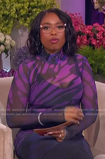 Jennifer Hudson on The Jennifer Hudson Show on FOX was spotted wearing this purple tie dye mesh dress on The Jennifer Hudson Show on Apr 09 2024's episode. Jennifer's Dress is the Shailene Turtleneck Bodycon Midi Dress by AFRM.