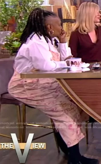 Whoopi Goldberg on The View on ABC was spotted wearing this pink embroidered overalls on The View on May 28 2024's episode. Whoopi's Overalls is the Fairy Overalls by Magnolia Pearl.