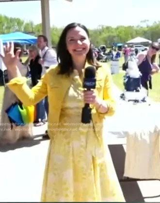 on Good Morning America on ABC was spotted wearing this yellow floral dress on Good Morning America on Apr 08 2024's episode. 's Dress is the Amy Sleeveless Shirt Dress in Passionfruit, Gardenia Swirl by Boden.