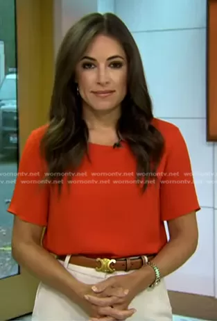 Kaylee Hartung on Today on NBC was spotted wearing this brown belt on Today on Apr 11 2024's episode. Kaylee's Belt is the Elegant Belt by Celine.