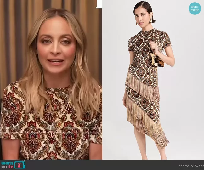 on Access Hollywood on NBC was spotted wearing this brown paisley print top on Access Hollywood on Apr 11 2024's episode. 's Top is the Haut Top by Rabanne . 's Skirt is the Jupe Skirt by Rabanne.