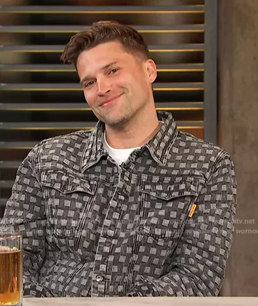 on Access Hollywood on NBC was spotted wearing this denim jacket on Access Hollywood on Apr 12 2024's episode. 's Jacket is the Jacquard Check Denim Jacket by Round Two.