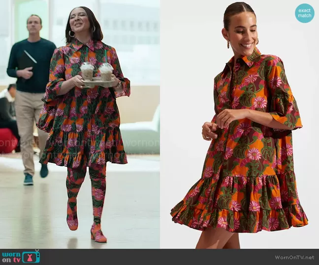 Molly Novak (played by Maya Rudolph) on Loot on Apple was spotted wearing this orange floral shirtdress on Loot on episode 'Mr. Congeniality' (2x04) in Apr 2024. Molly's Dress is the Choux Dress in Orange Gerber by La DoubleJ . Molly's Shoes is the High Boots in Orange Gerber by La DoubleJ.