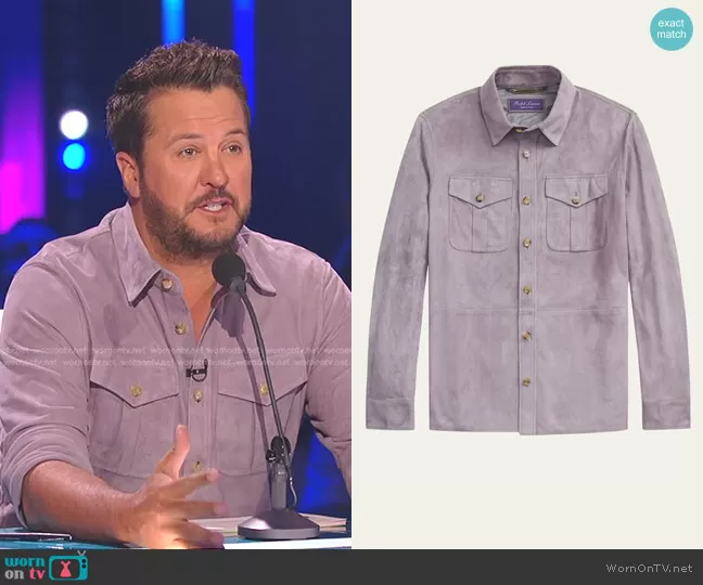 Ralph Lauren Barron Classic Suede Overshirt worn by Luke Bryan on American Idol