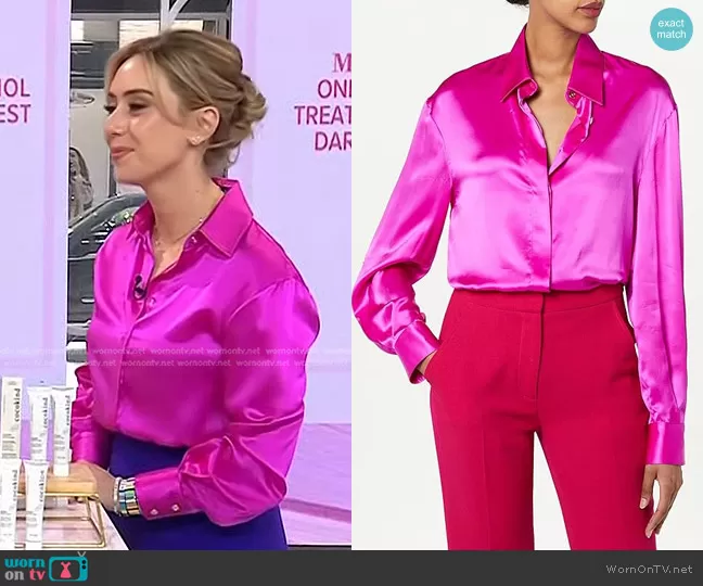 on Today on NBC was spotted wearing this fuchsia silk blouse on Today on Apr 16 2024's episode. 's Top is the Silk Charmeuse Top in Fuchsia by Sergio Hudson.