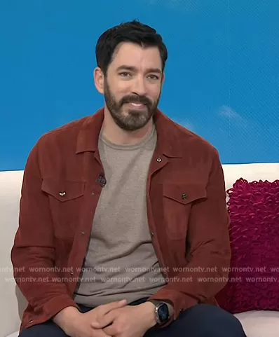 on Today on NBC was spotted wearing this brown suede jacket on Today on Apr 17 2024's episode. 's Jacket is the Nico Long Sleeved Suede Press Stud Jacket by Reiss.