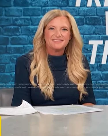on Access Hollywood on NBC was spotted wearing this navy folded neck dress on Access Hollywood on Apr 17 2024's episode. 's Dress is the Short-Sleeve Sheath Dress by Adrianna Papell.