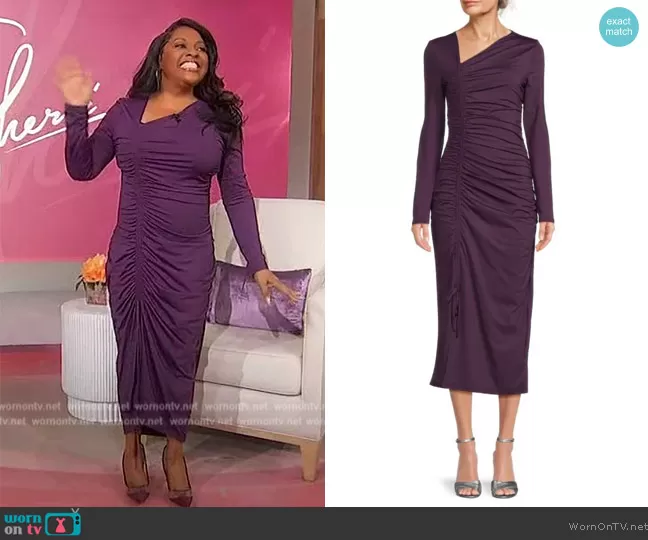 Rachel Parcell Asymmetric Ruched Midi Dress worn by Sherri Shepherd on Sherri