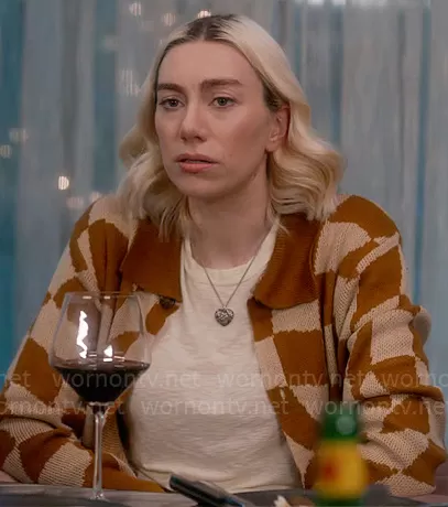 Allison Grant (played by Madeline Wise) on So Help Me Todd on CBS was spotted wearing this checkerboard cardigan on So Help Me Todd on episode 'Is The Jury Out?' (2x06) in Apr 2024. Allison's Sweater is the Jacquard pattern polo-cardigan by Super Massive at Simons.