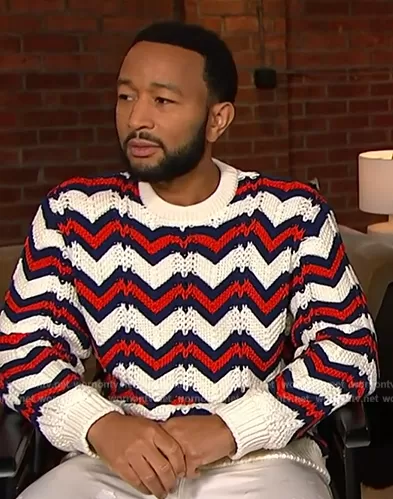 on E! News on E! was spotted wearing this chevron stripe sweater on E! News on Apr 19 2024's episode. 's Sweater is the Chevron Knit Jumper by Gucci.