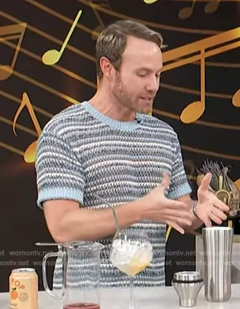 on Access Hollywood on NBC was spotted wearing this blue knit short sleeve sweater on Access Hollywood on Apr 19 2024's episode. 's Shirt is the Crochet Knit T-Shirt by Zara.