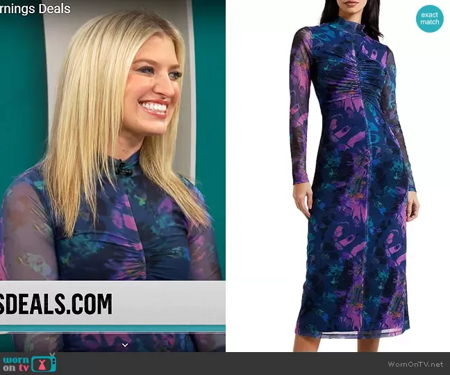 Ashley Bellman on CBS Mornings on CBS was spotted wearing this blue printed mesh dress on CBS Mornings on Apr 21 2024's episode. Ashley's Dress is the Toni Gabriella Mesh Midi Dress by French Connection .