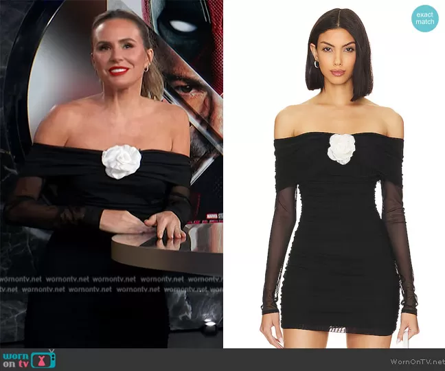 Keltie Knight on E! News on E! was spotted wearing this black off shoulder sheer dress on E! News on Apr 23 2024's episode. Keltie's Dress is the Nellia Rose Dress by Amanda Uprichard.