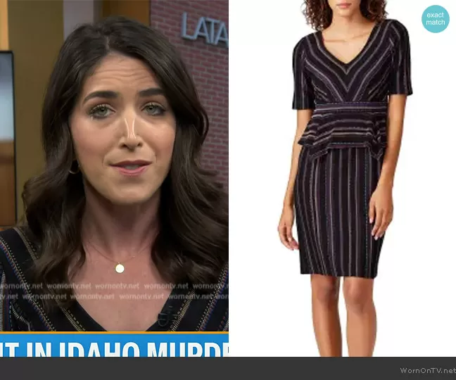 Liz Kreutz on Today on NBC was spotted wearing this Liz Kreutz’ stripe knit peplum dress on Today on Apr 23 2024's episode. Liz's Dress is the Striped Peplum Dress by Nanette Lepore.