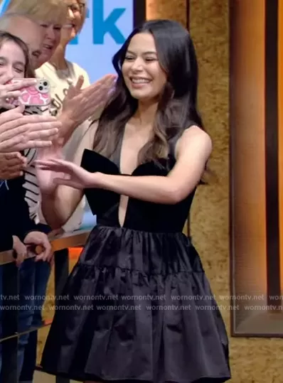 on Live with Kelly and Mark on Disney ABC Home Entertainment was spotted wearing this black bow front mini dress on Live with Kelly and Mark on Apr 24 2024's episode. 's Dress is the Emilie Bow Sleeveless Fit and Flare Mini Dress by Sau Lee.