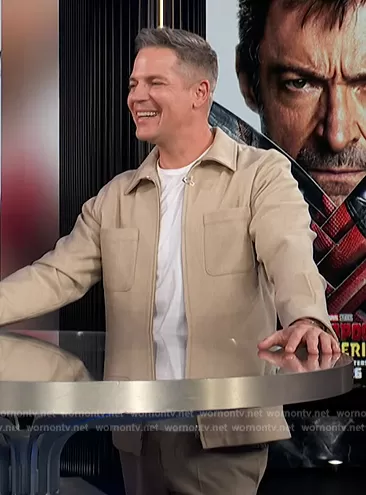 on E! News on E! was spotted wearing this beige jacket on E! News on Apr 24 2024's episode. 's Jacket is the Wool Overshirt by Sandro.