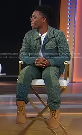 on Good Morning America on ABC was spotted wearing this moon print denim jacket and jeans on Good Morning America on Apr 24 2024's episode. 's Jacket is the Moon Denim Jacket by Marine Serre . 's Pants is the Logo-Print Straight-Leg Jeans by Marine Serre.