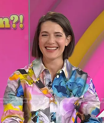 on Today on NBC was spotted wearing this abstract print button down shirt on Today on Apr 25 2024's episode. 's Top is the Martina Top in Liquified Orchid by Stine Goya.