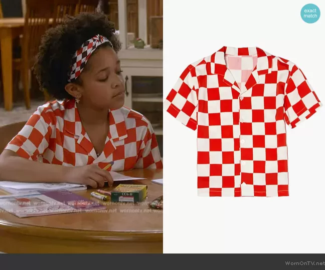 Maya Upshaw (played by Journey Christine) on The Upshaws on Netflix was spotted wearing this red check shirt on The Upshaws on episode 'Electric Feels' (5x02) in Apr 2024. Maya's Top is the Checkered Print Shirt by Forever 21.