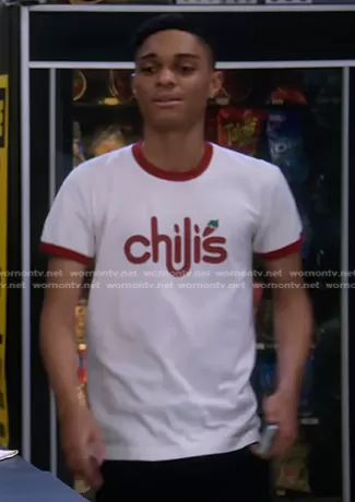 Tristan (played by Paul-Mikél Williams) on The Upshaws on Netflix was spotted wearing this Chilis print tee on The Upshaws on episode 'Background Checkered' (5x03) in Apr 2024. 's Shirt is the Vintage Logo Ringer T-Shirt by Chilis.