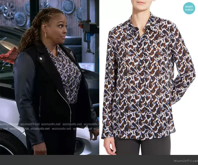 Theory Printed Silk Blouse worn by Regina Upshaw (Kim Fields) on The Upshaws