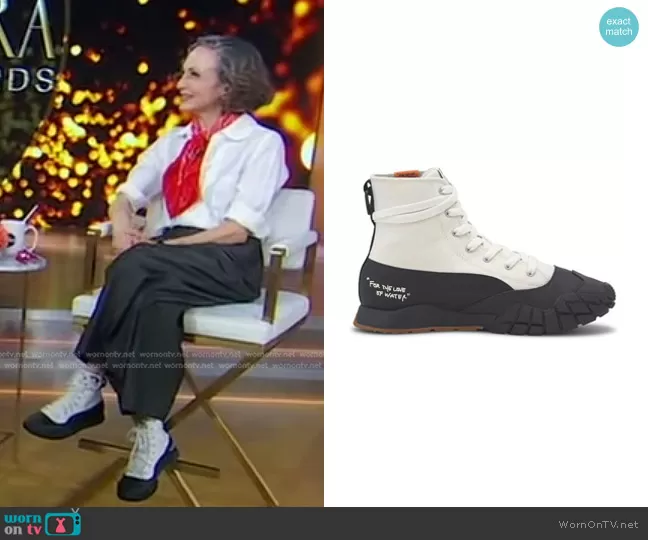 on Good Morning America on ABC was spotted wearing this white sneakers on Good Morning America on Apr 29 2024's episode. 's Shoes is the Kyron Central Saint Martins For the Love of Water Sneaker by Puma.
